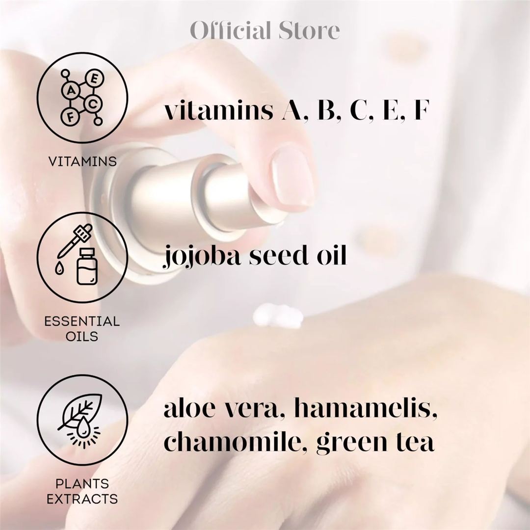 Jojobový olej – Silný prostředek, který zklidňuje a zklidňuje pokožku a pomáhá jí zadržovat vlhkost.