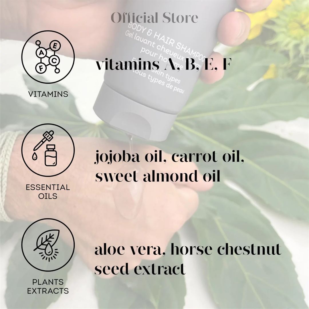 naším 2 v 1 přírodním, veganským hydratačním šamponem, a sprchovým gelem